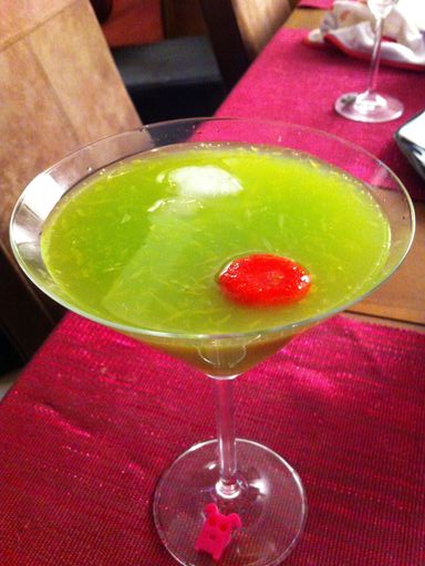 Réunir les ingrédients, hormis le Pisang, dans un shaker. Frapper. Verser dans un verre à cocktail, puis ajouter le Pisang. ...suite...